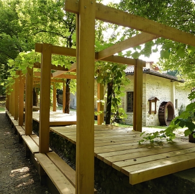 Il carattere fortemente naturalistico di questo sito ha influenzato la posa di panche e tavoli; in questo modo è stato assicurato il rispetto per la vite e gli alberi già presenti.